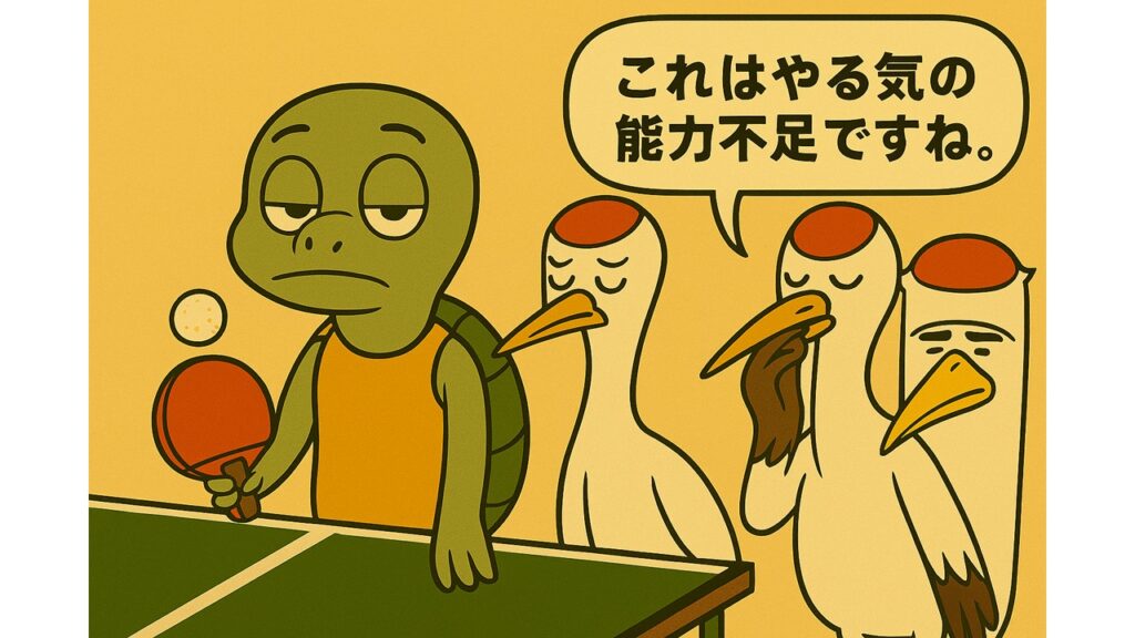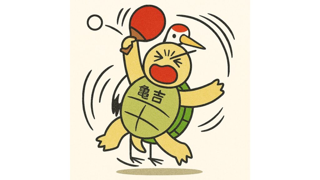 メンブロの登場人物(人?)は3名。卓球のグッドコーチを目指す『鶴介』『亀吉』とともに学んでいきましょう!!